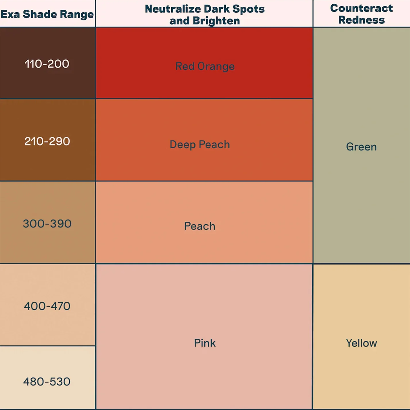 • Use the chart below to determine your shade range and choose the right product for you.